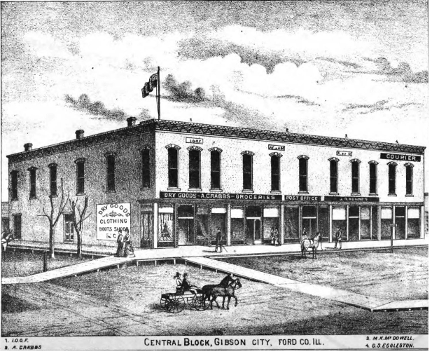 – Also located at the North end of the business district was Stevens & Means Gibson City Marble and Granite Works. See Photo.