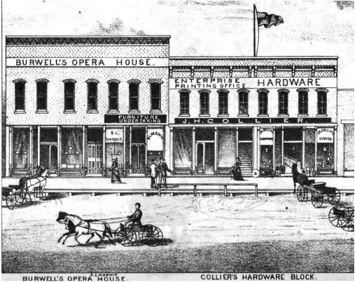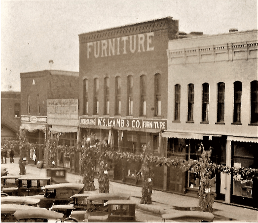 – One of the most recognizable and historical buildings currently listed as THE STORE since 2016 located at 105-107 North Sangamon Ave. The Burwell Opera House was at 107 1/2 from 1883-1910 and W. S. Lamb and Co. Furniture and Undertaking at 105-107 during the time frame of 1888-1941. (See attached photos)