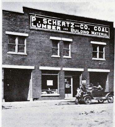 – P. SCHERTZ AND CO. COAL LUMBER AND BUILDING MATERIALS – was located at 107 S. Sangamon Avenue from 1907-1925 – see photo attached